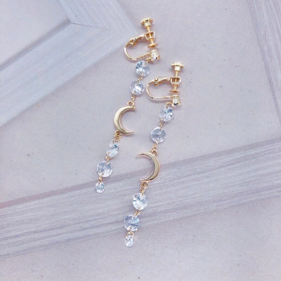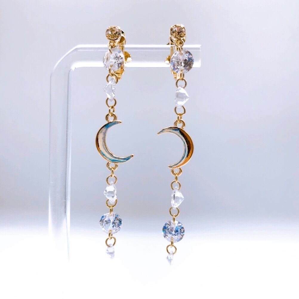 【伊達政宗/戦国武将アクセサリー】煌めくジルコニアとクレセントムーンのイヤリング【G】