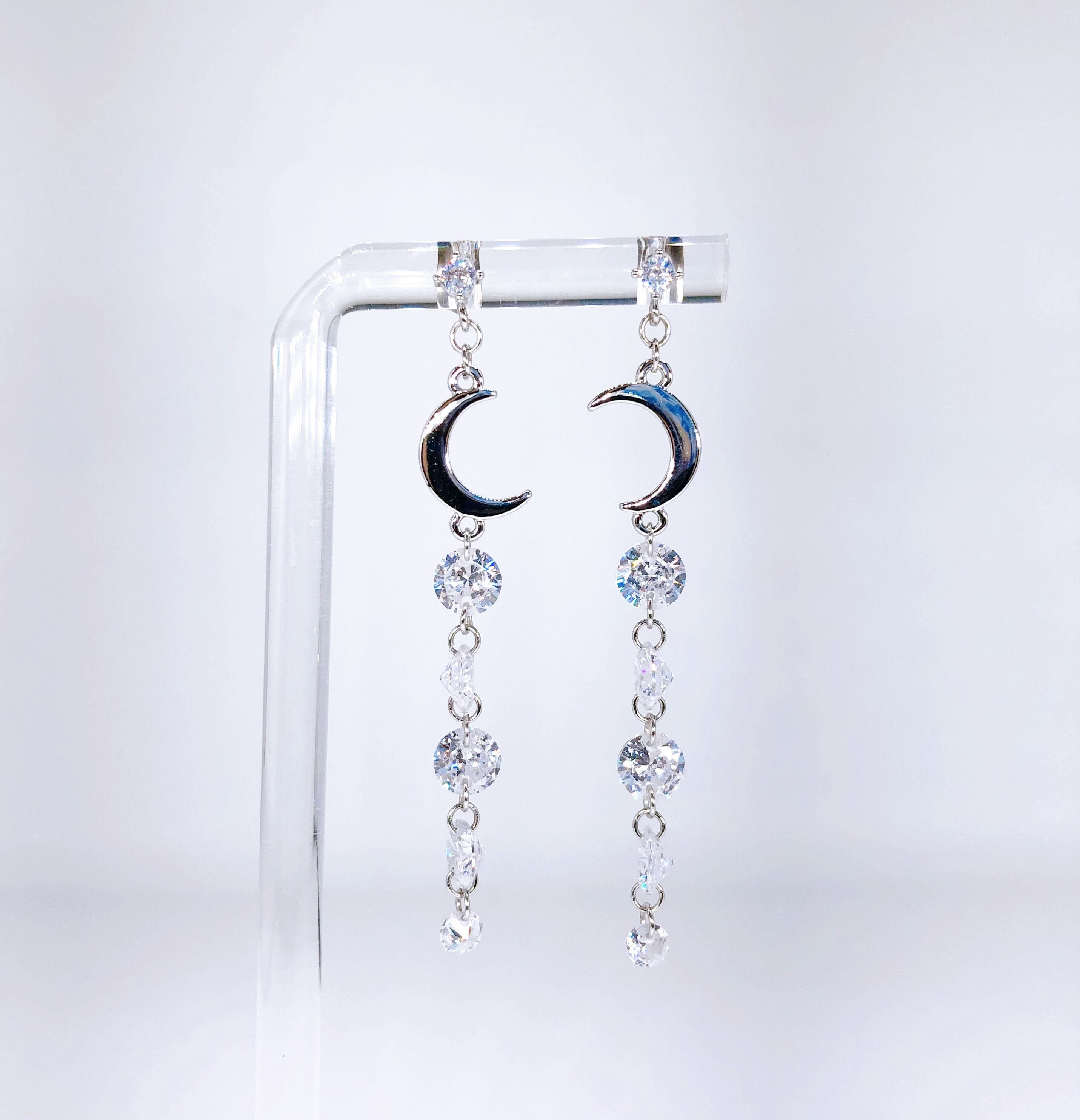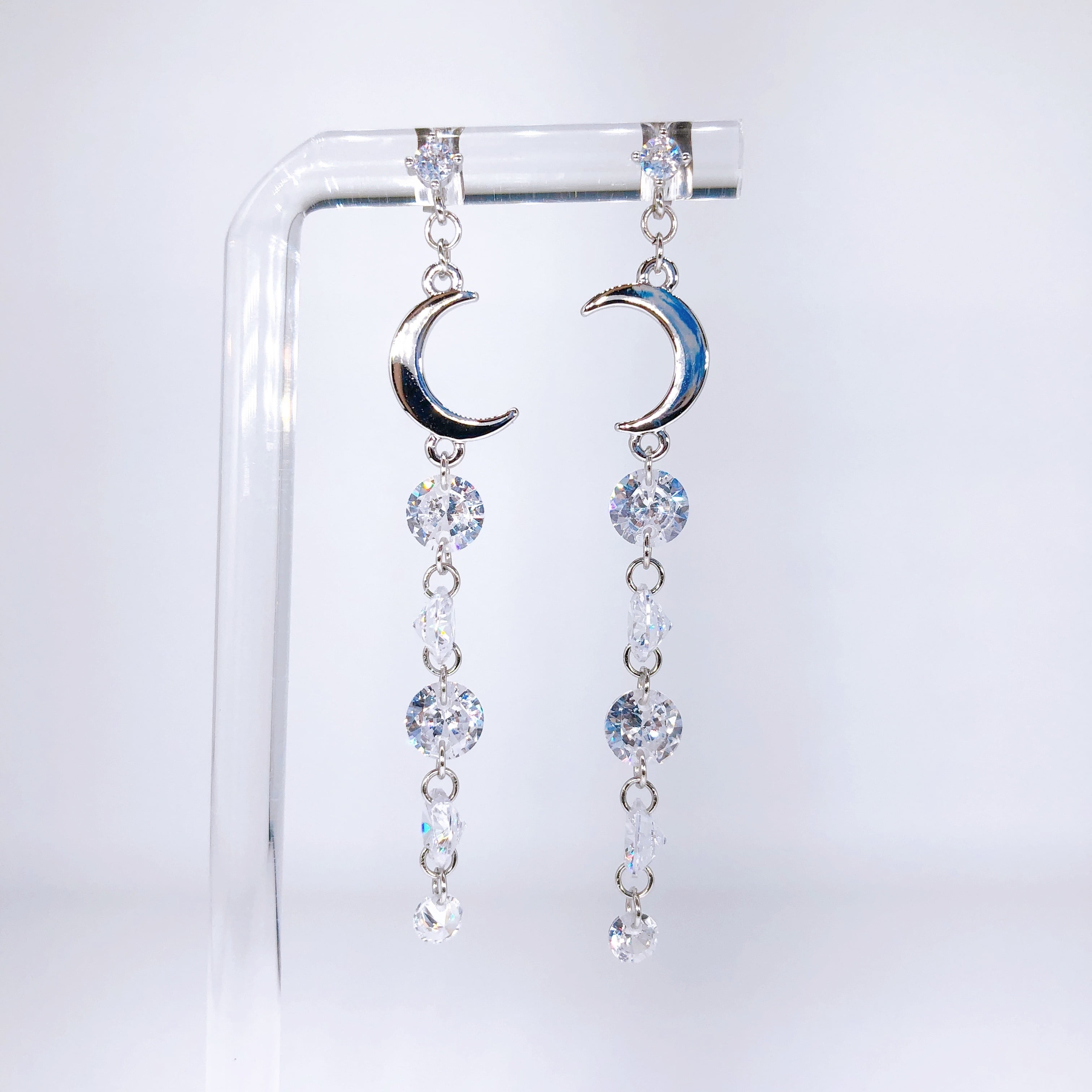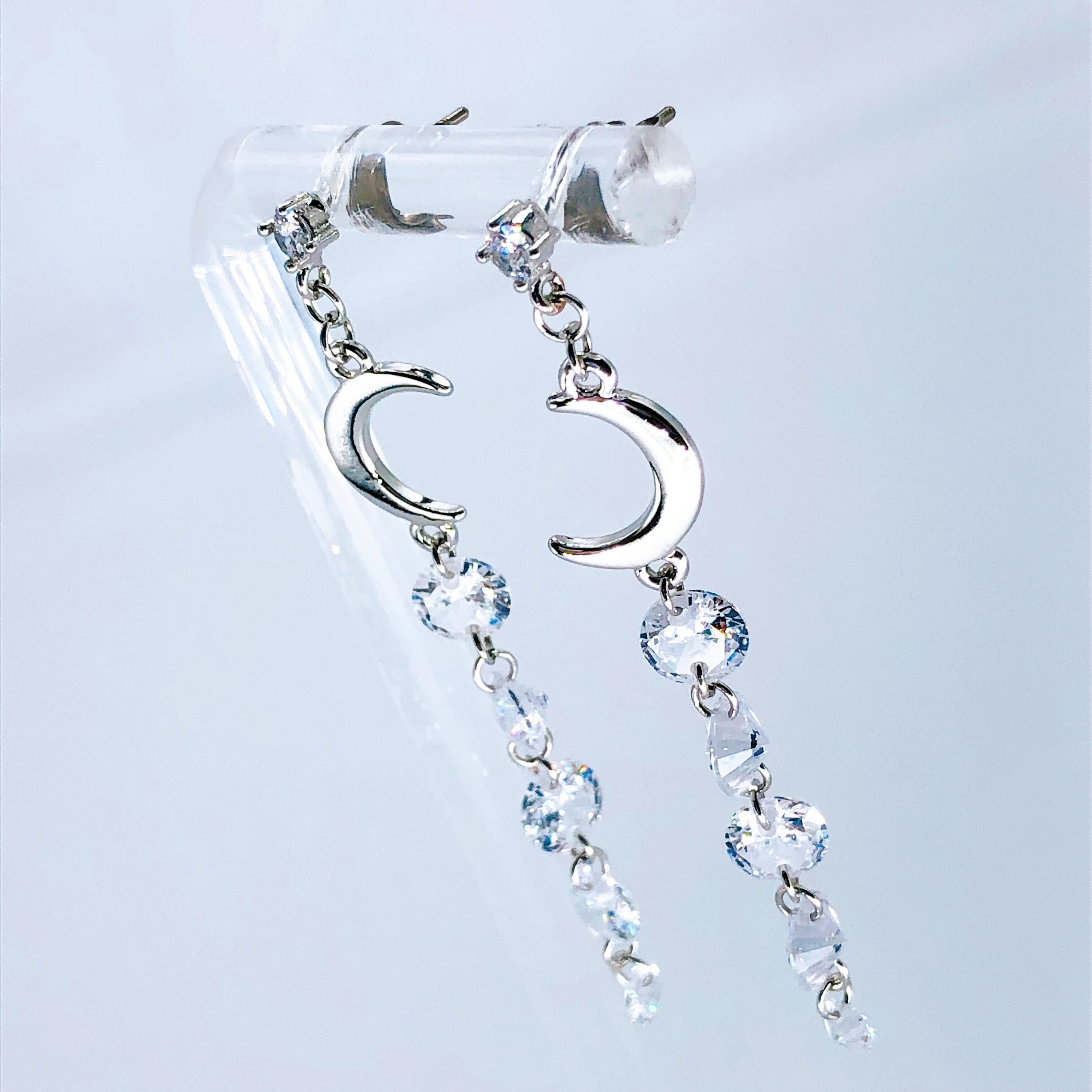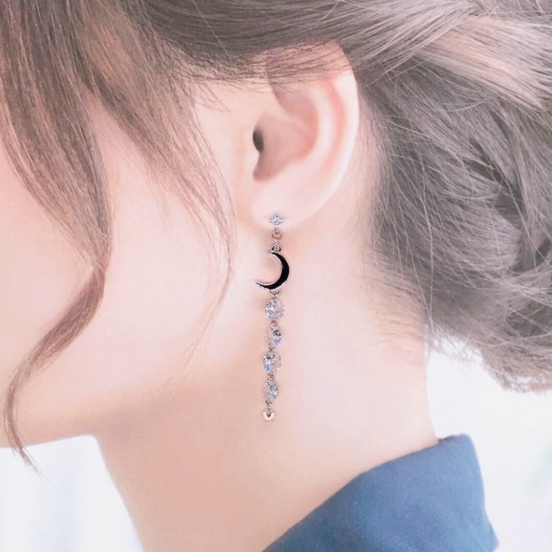【伊達政宗/戦国武将アクセサリー】クレセントムーンと五星ジルコニアのロングピアス【S】