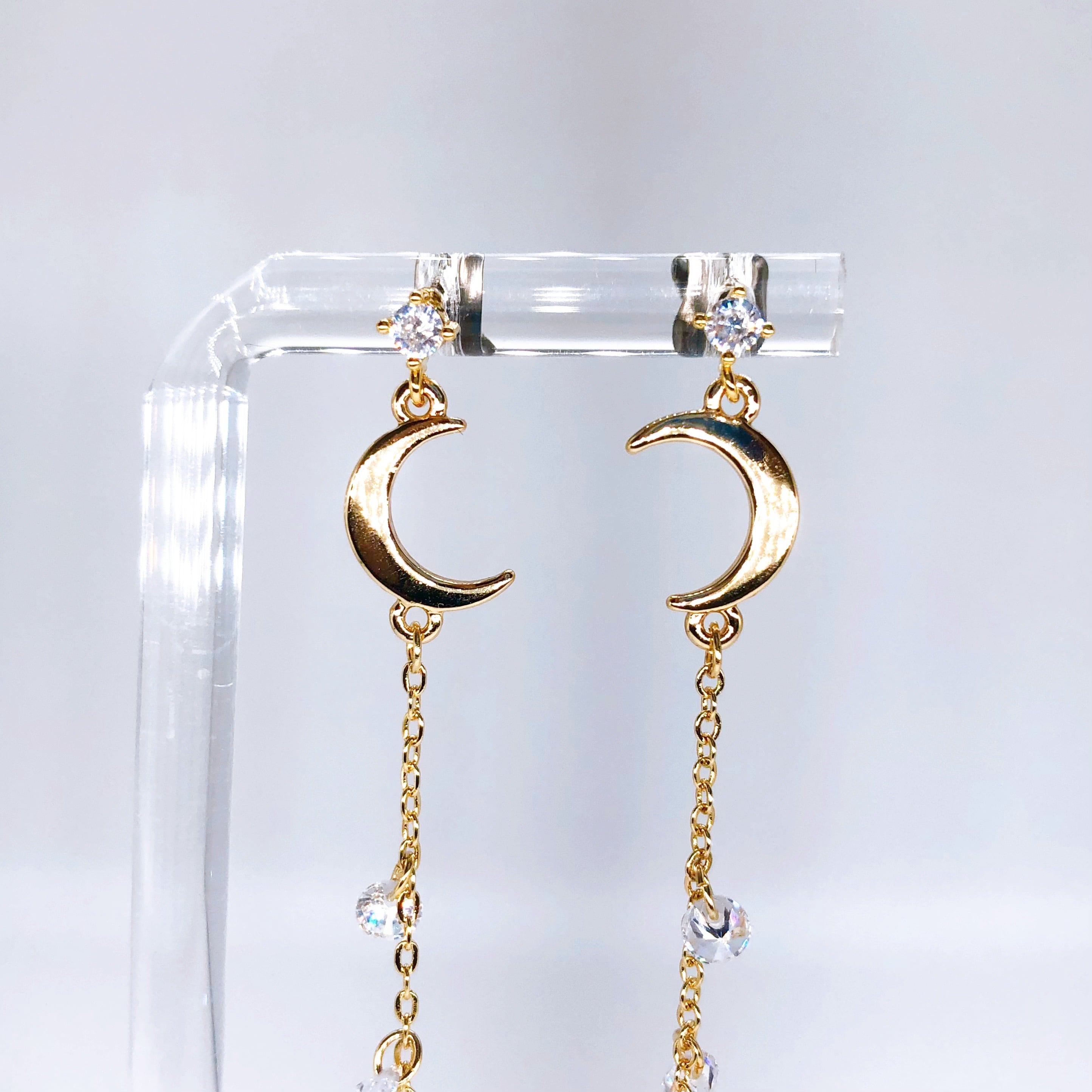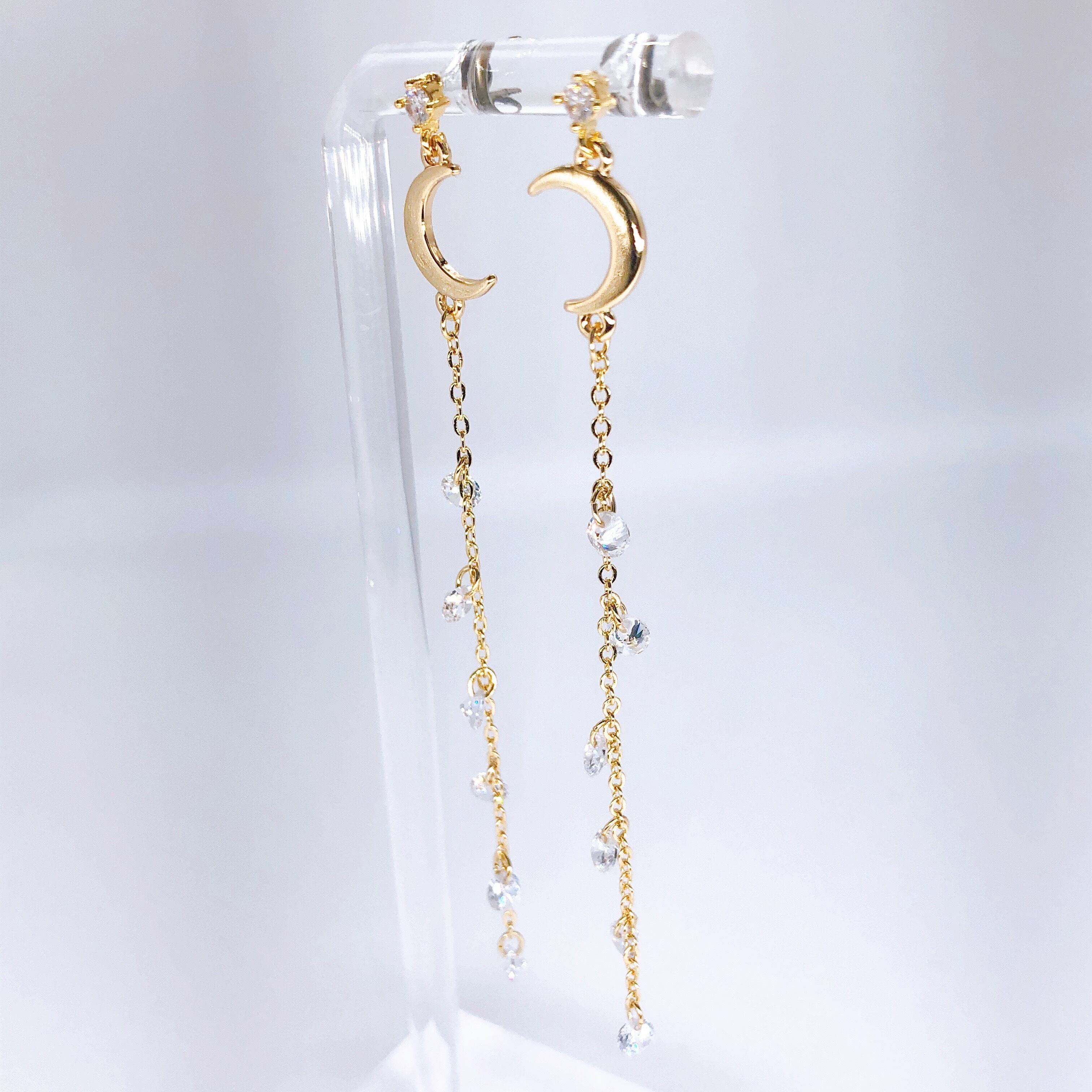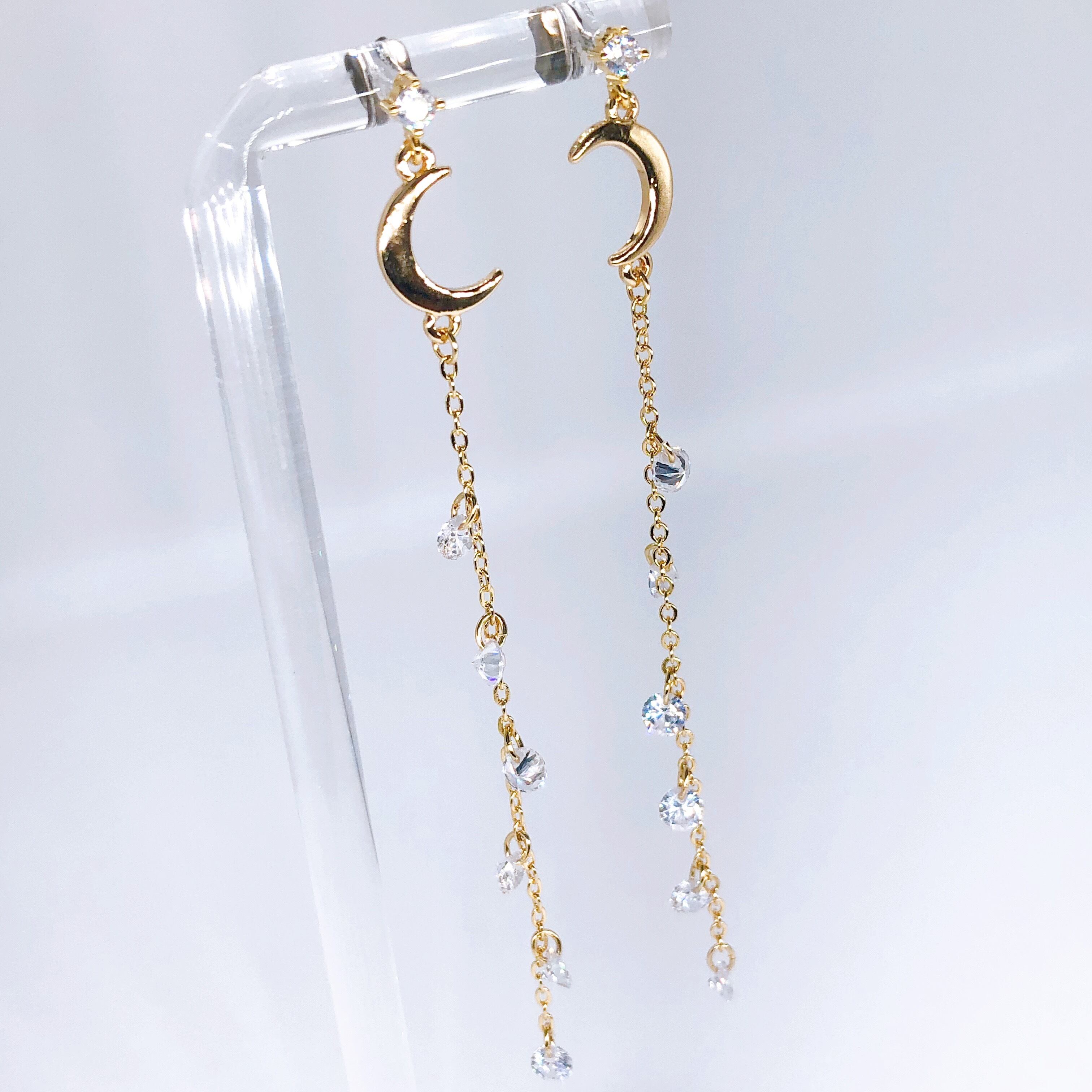 その象徴である三日月から連なるジルコニアを流星に見立てたピアスです。