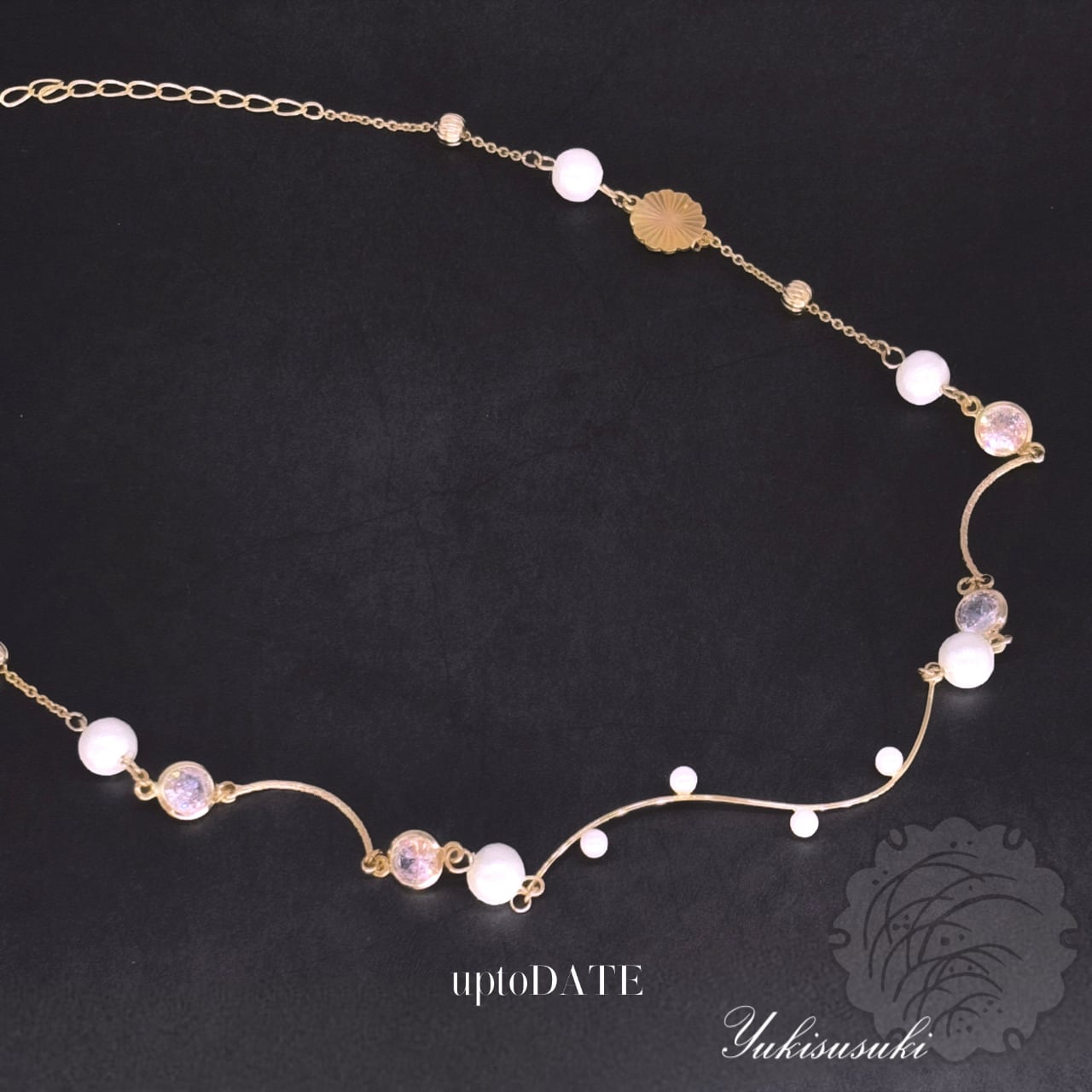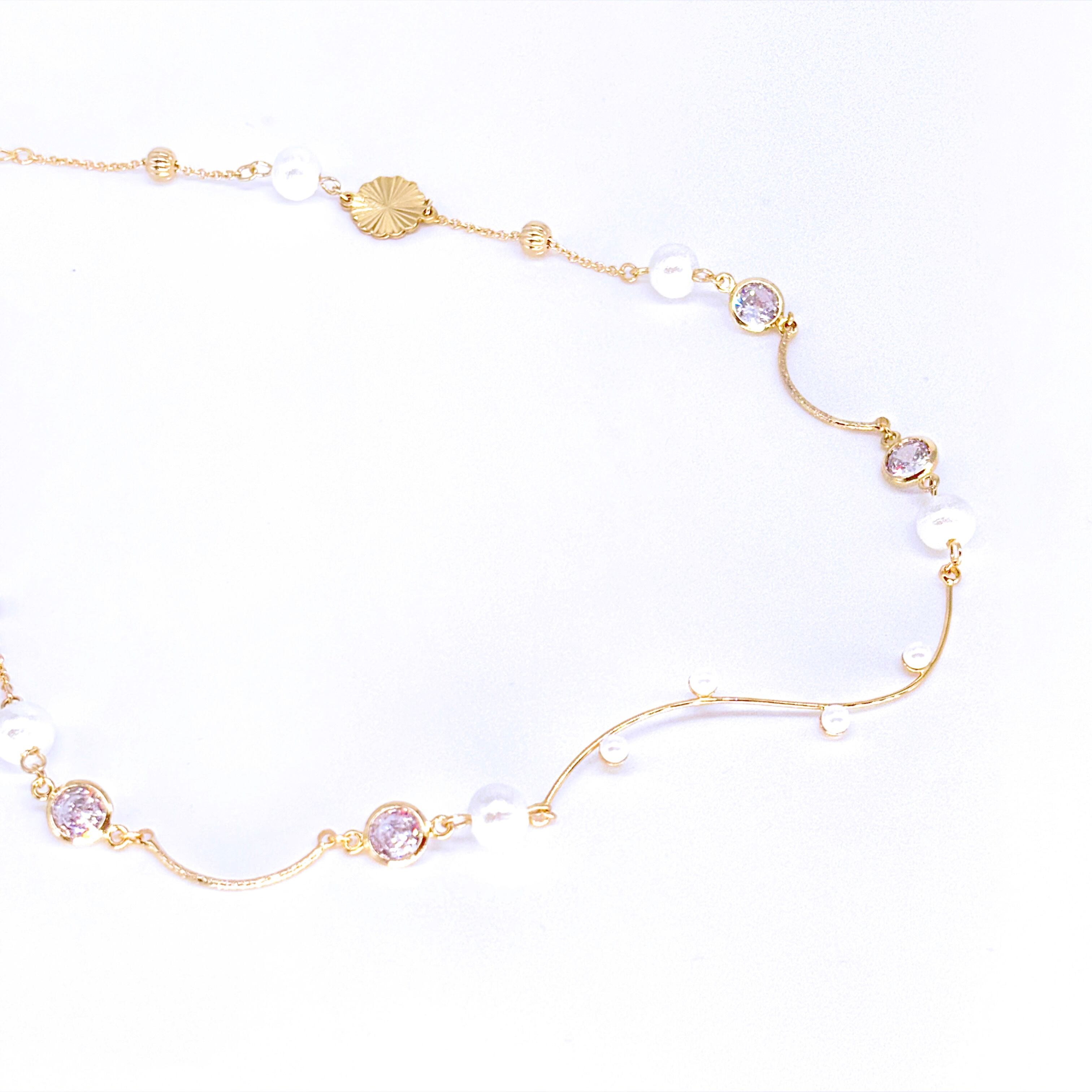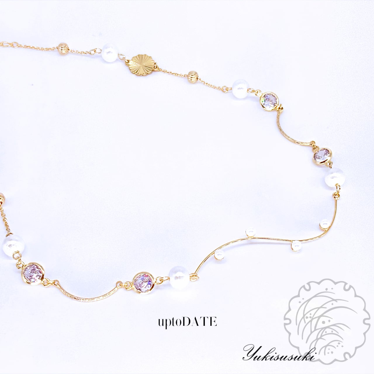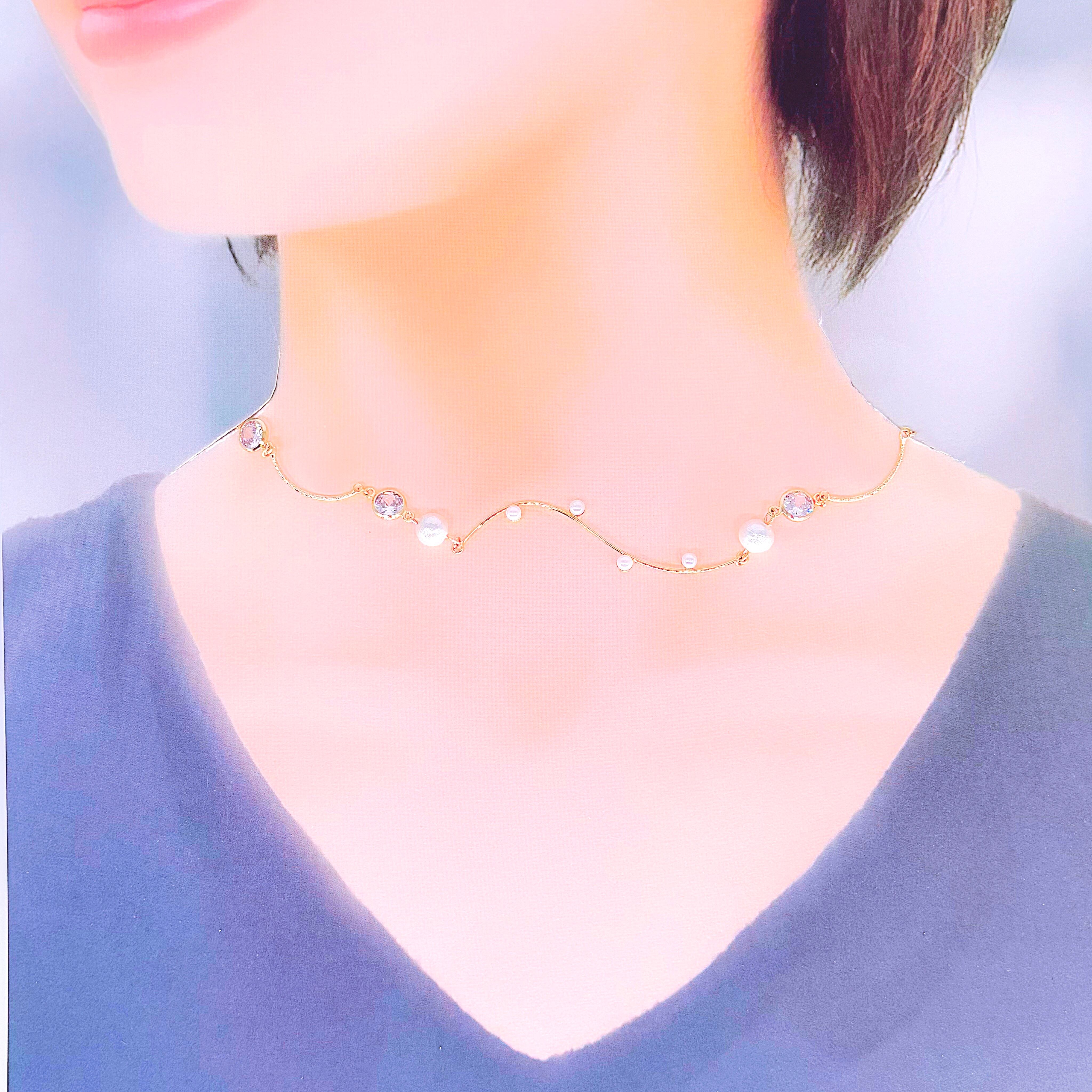 【雪薄紋/伊達・家紋アクセサリー】クリスタルとパールのウェーブチョーカー