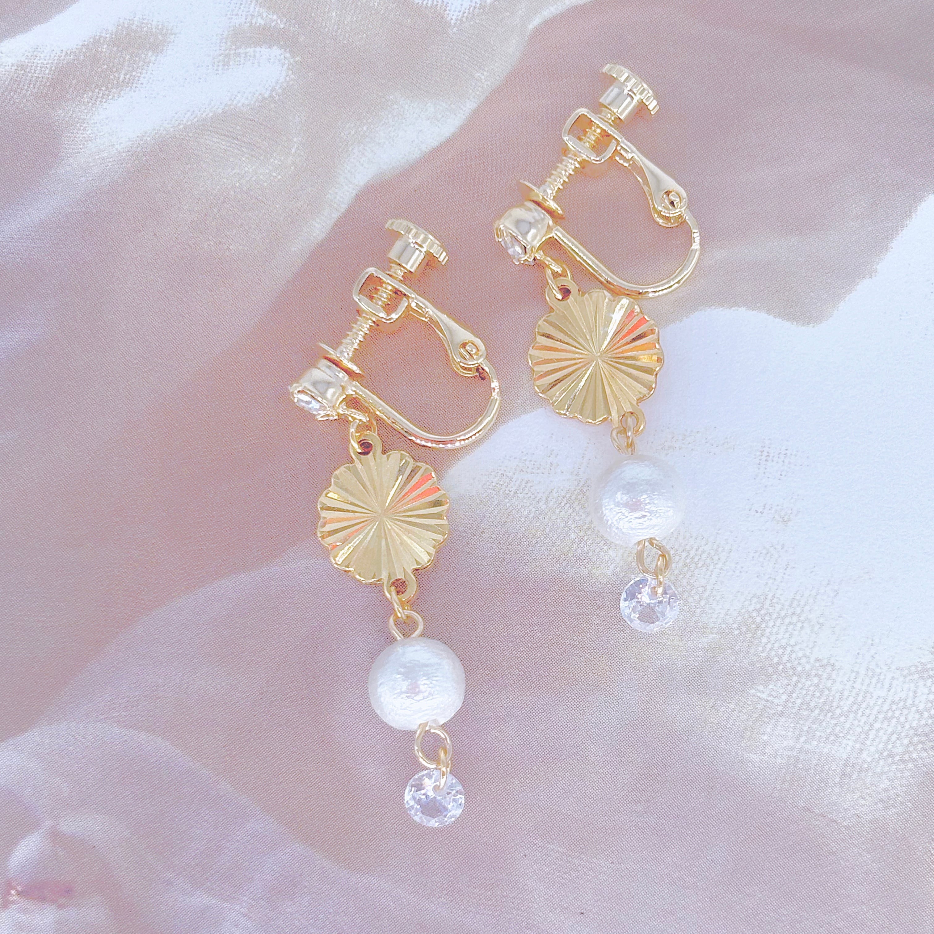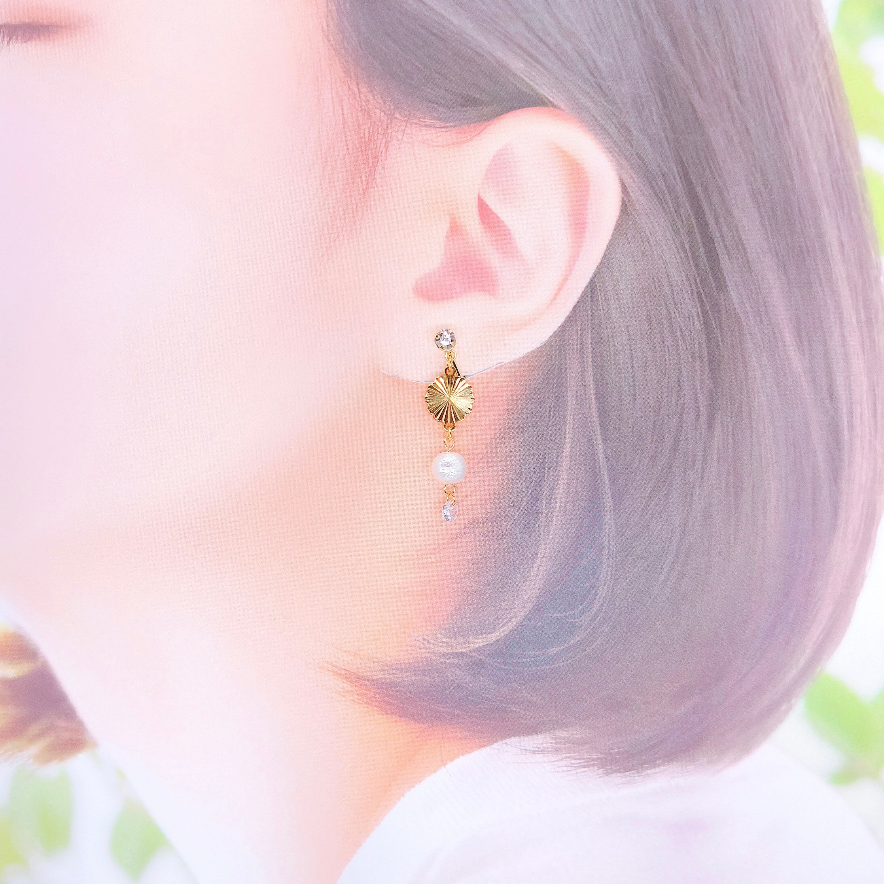 【菊紋/伊達・家紋アクセサリー】菊モチーフ❇︎シンプルイヤリング【G】