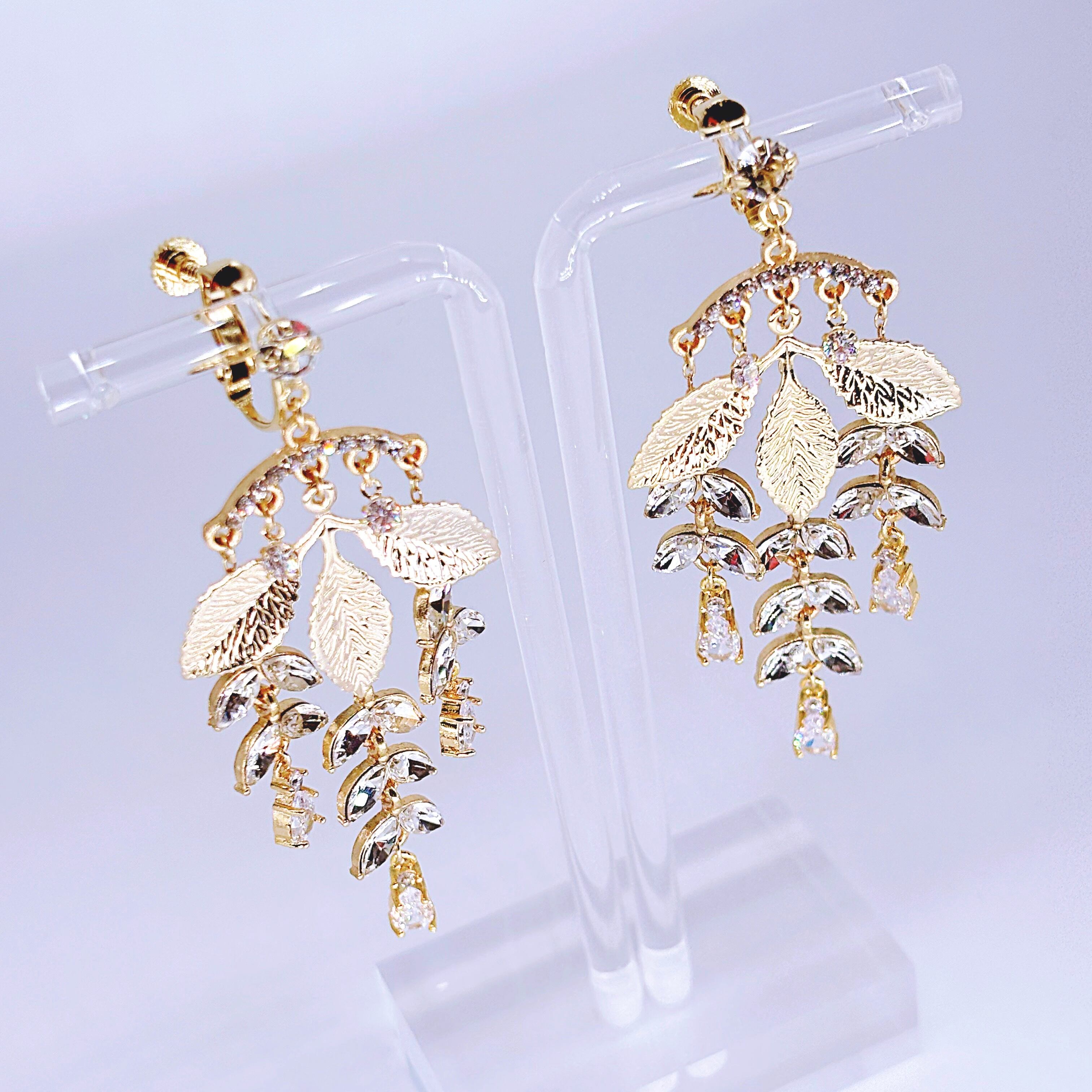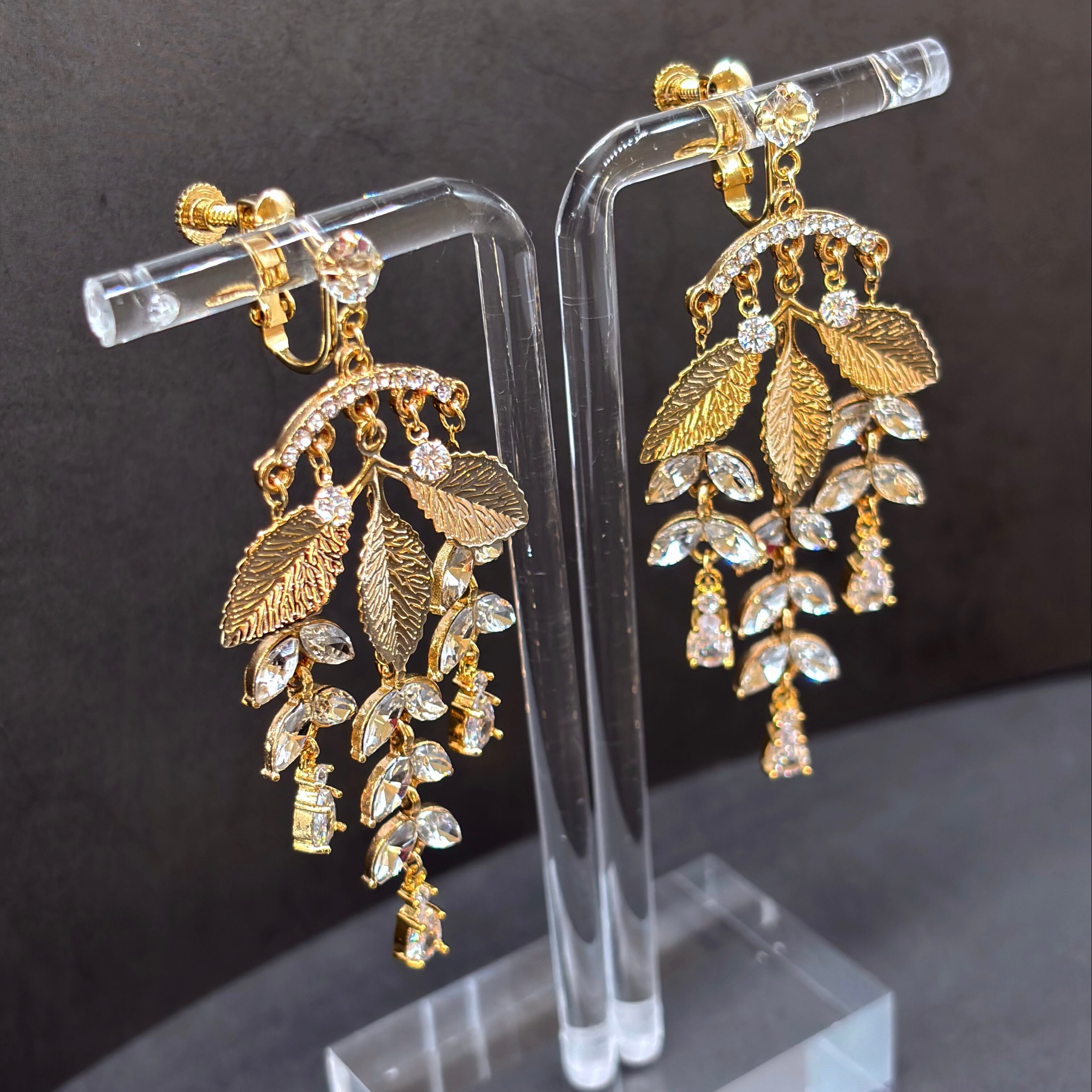 耳もとでひときわ輝くデザインは、特別なイベントやパーティーシーンにぴったりなイヤリングです。